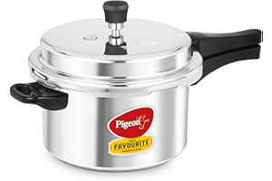 | Pigeon By Stovekraft Favourite Aluminium Pressure Cooker with Outer Lid Induction and Gas Stove Compatible 5 Litre Capacity for Healthy Cooking (Silver) |